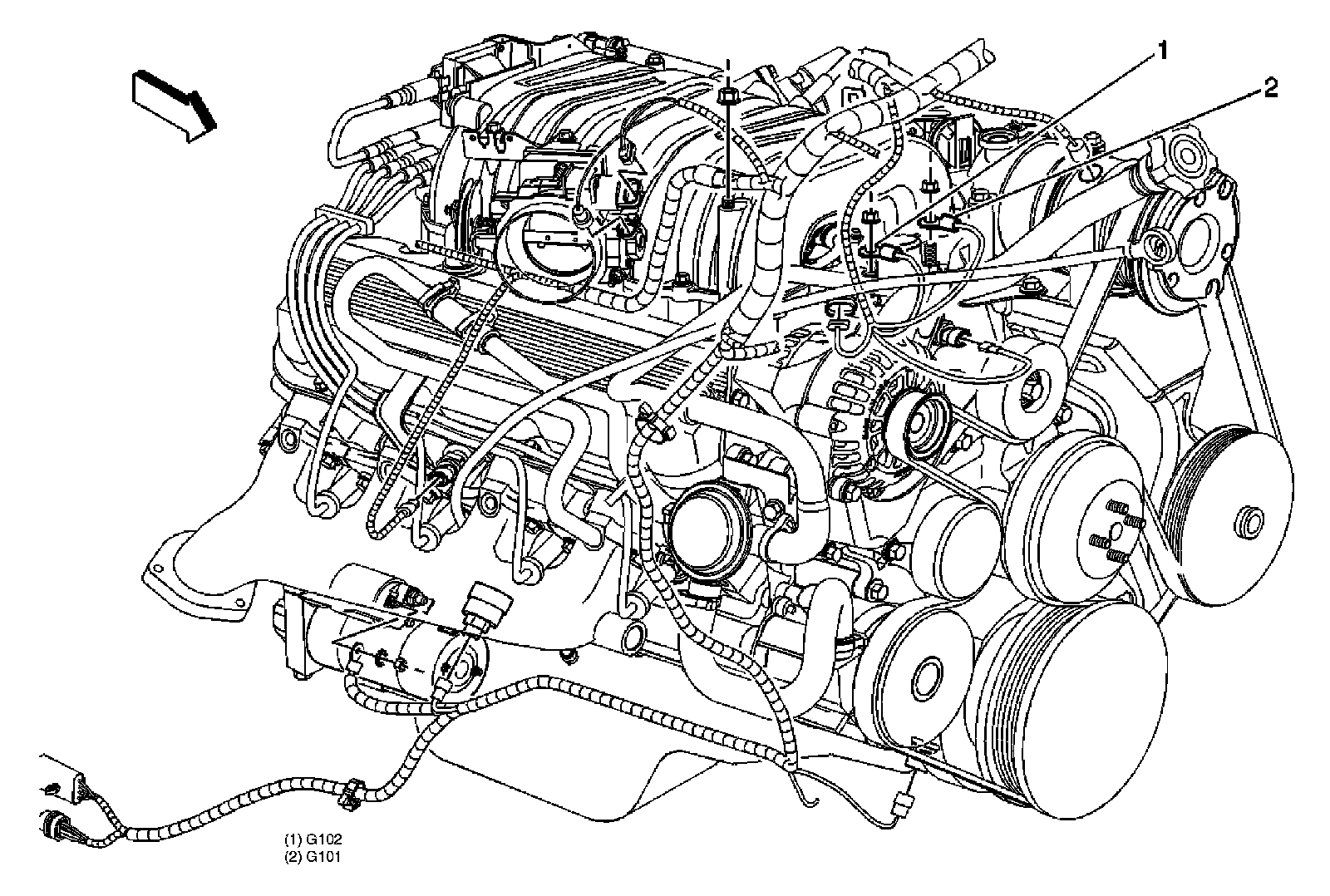 Engine harness, near the generator bracket.