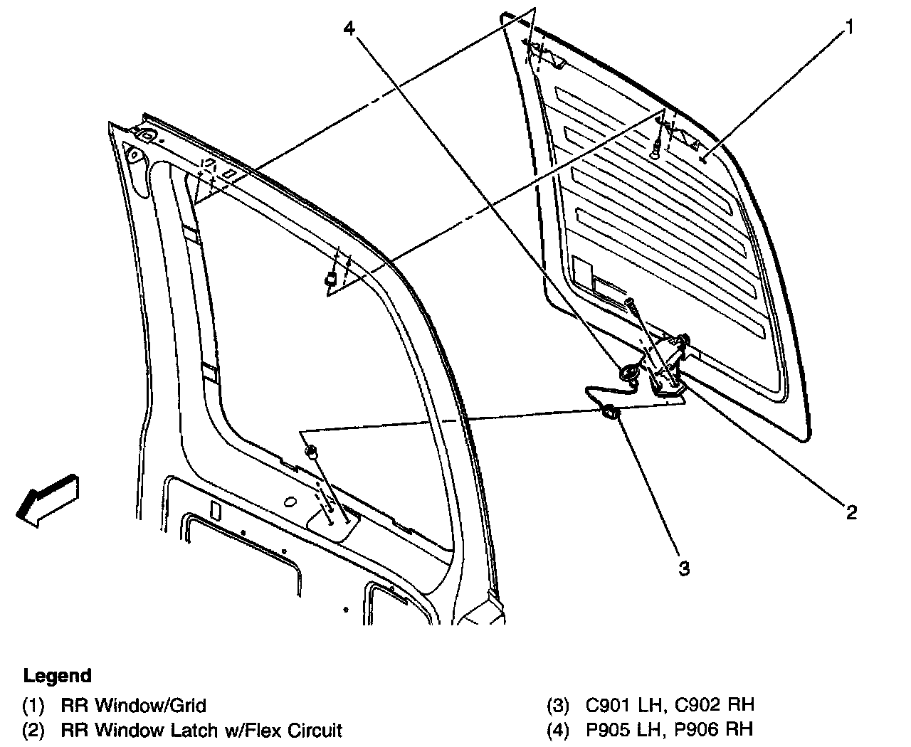 Harness Routing Views (Rear Defogger Details-Swing Out Window):