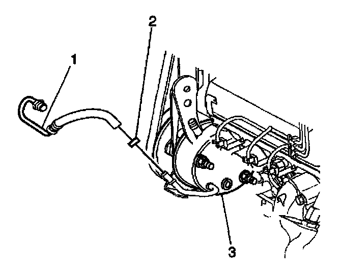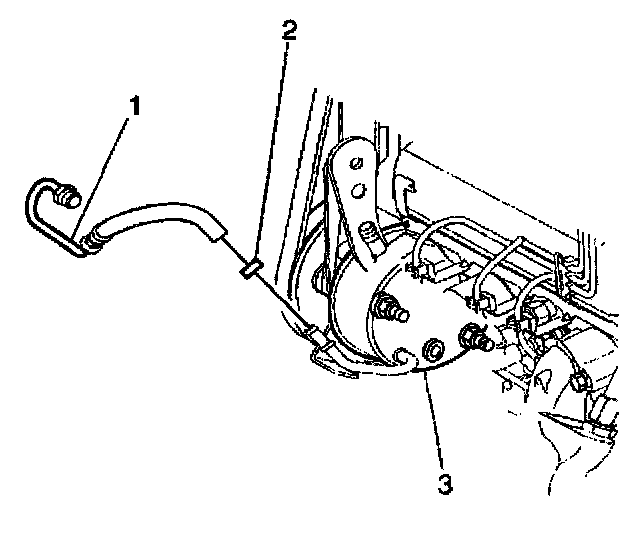3. Remove the power steering outlet hose (1) from the steering pump (3).