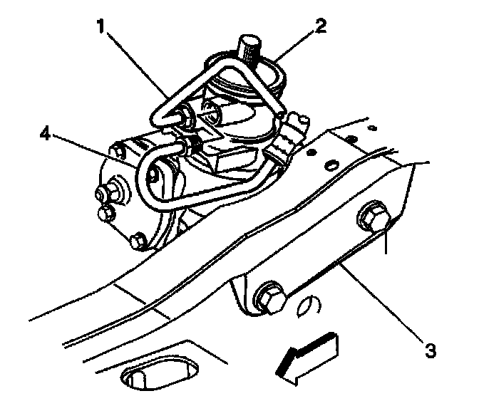 4. Remove the steering gear outlet hose (4) from the steering gear (2).