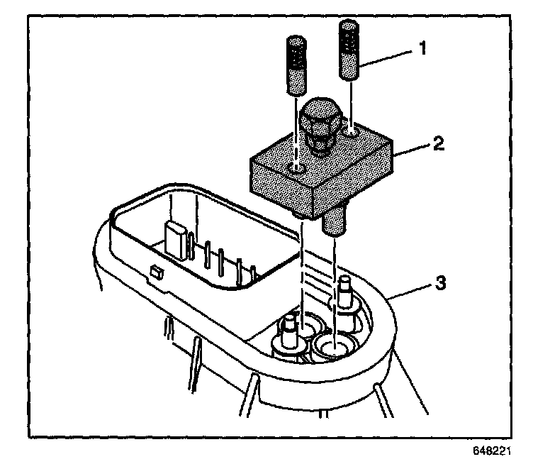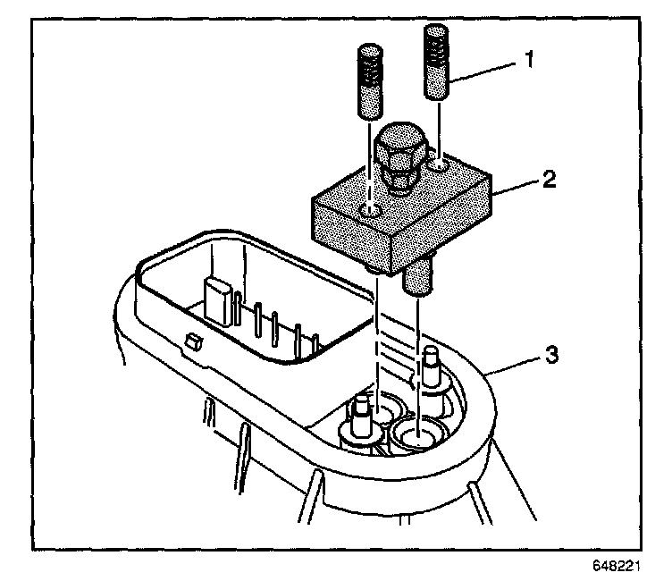 11. Install the J 44466-12 (2) and the J 44466-13 (1) to the metering body and tighten. Make sure that the fuel pipe 0-rings, washer, and spacers are present and in their proper position.