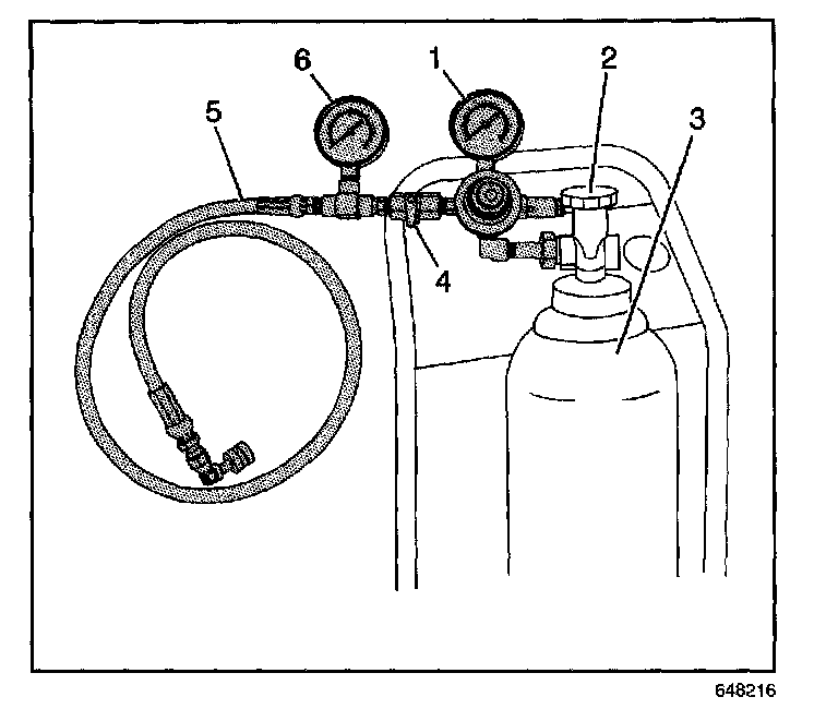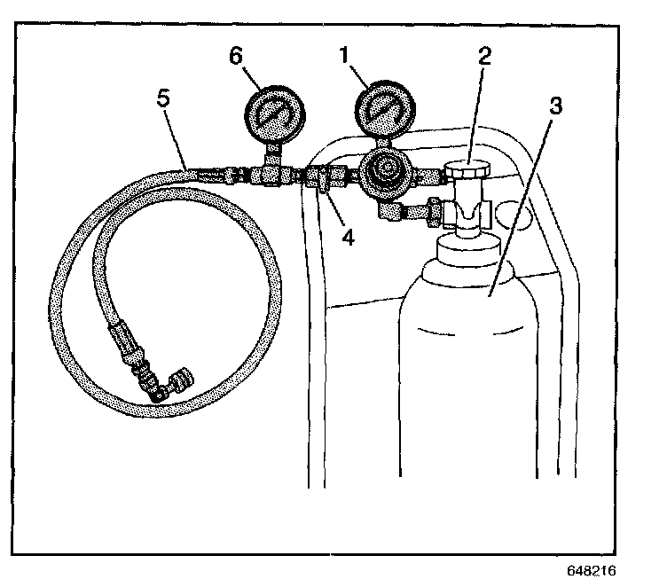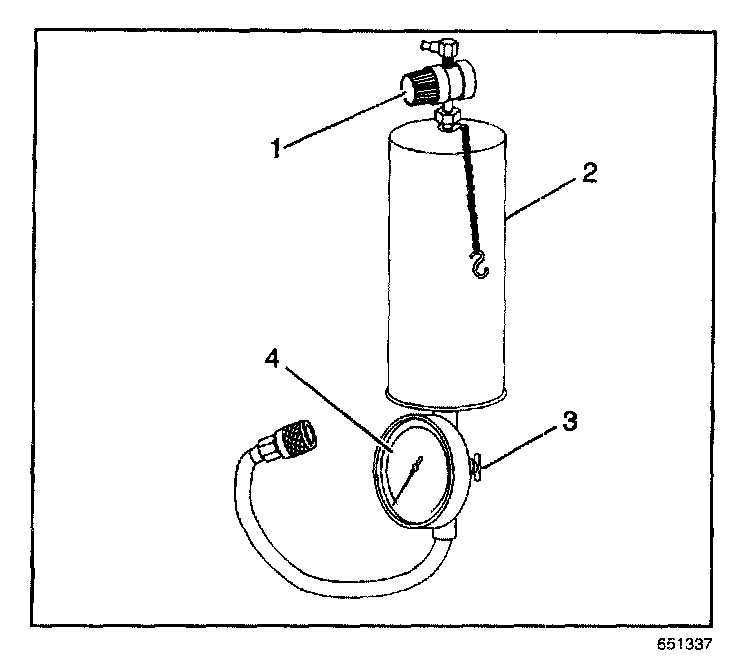 14. Install the J 44466-10 (5) to the J 41413 tank (3). The J 44466-10 regulator is preset to 150 psi.