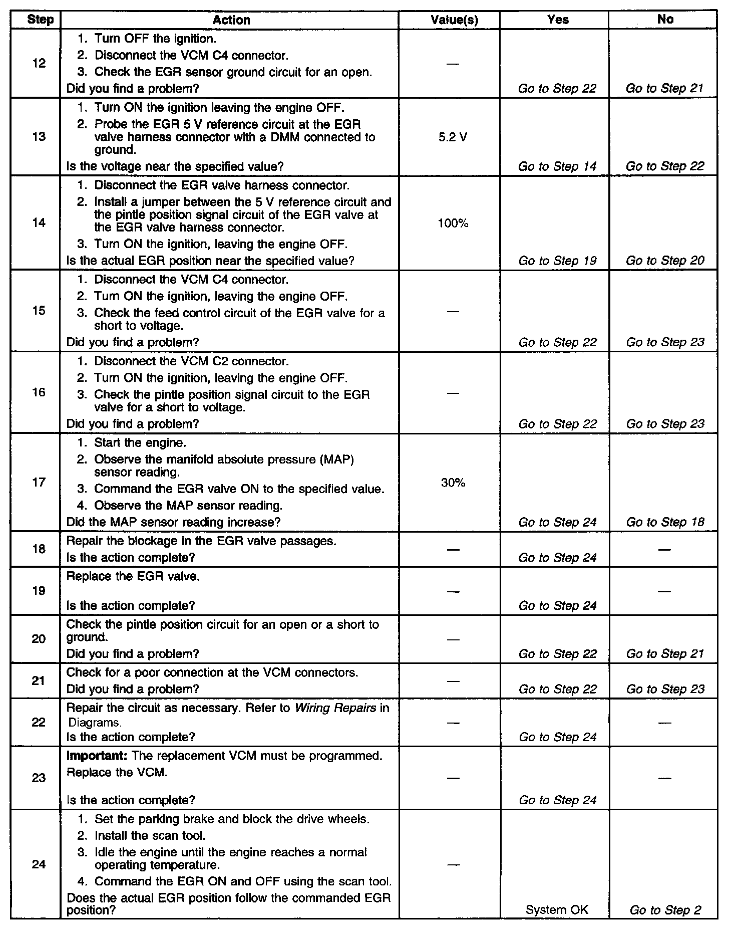 6. This step checks the electrical control circuits from the VCM to the EGR valve.