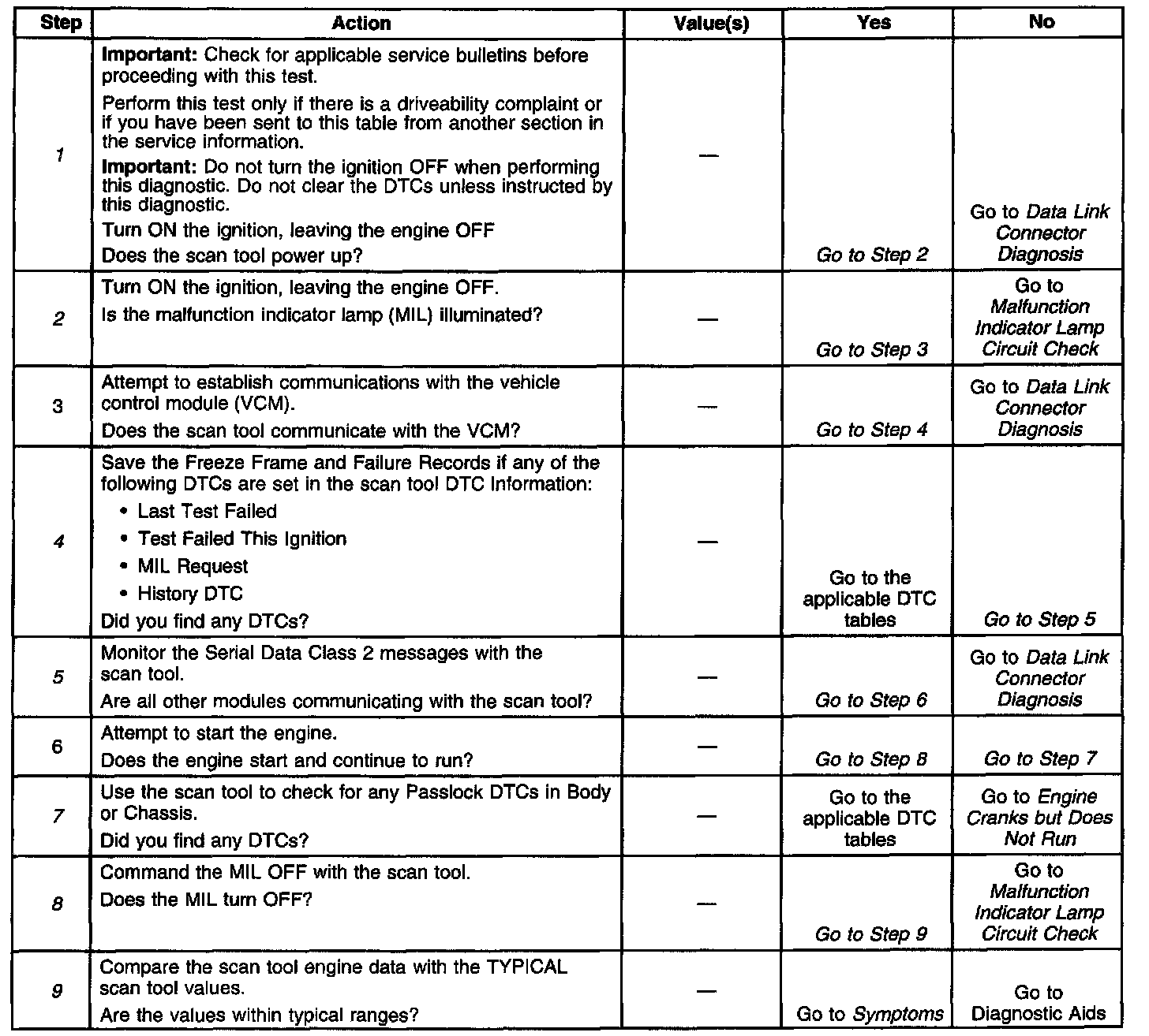 The Powertrain On-Board Diagnostic (OBD) System Check is an organized approach to identifying a problem created by a control module system malfunction. The Powertrain On-Board Diagnostic (OBD) System Check is the starting point for any driveability concern diagnosis. The system check directs the service technician to the next logical step in diagnosing the concern.