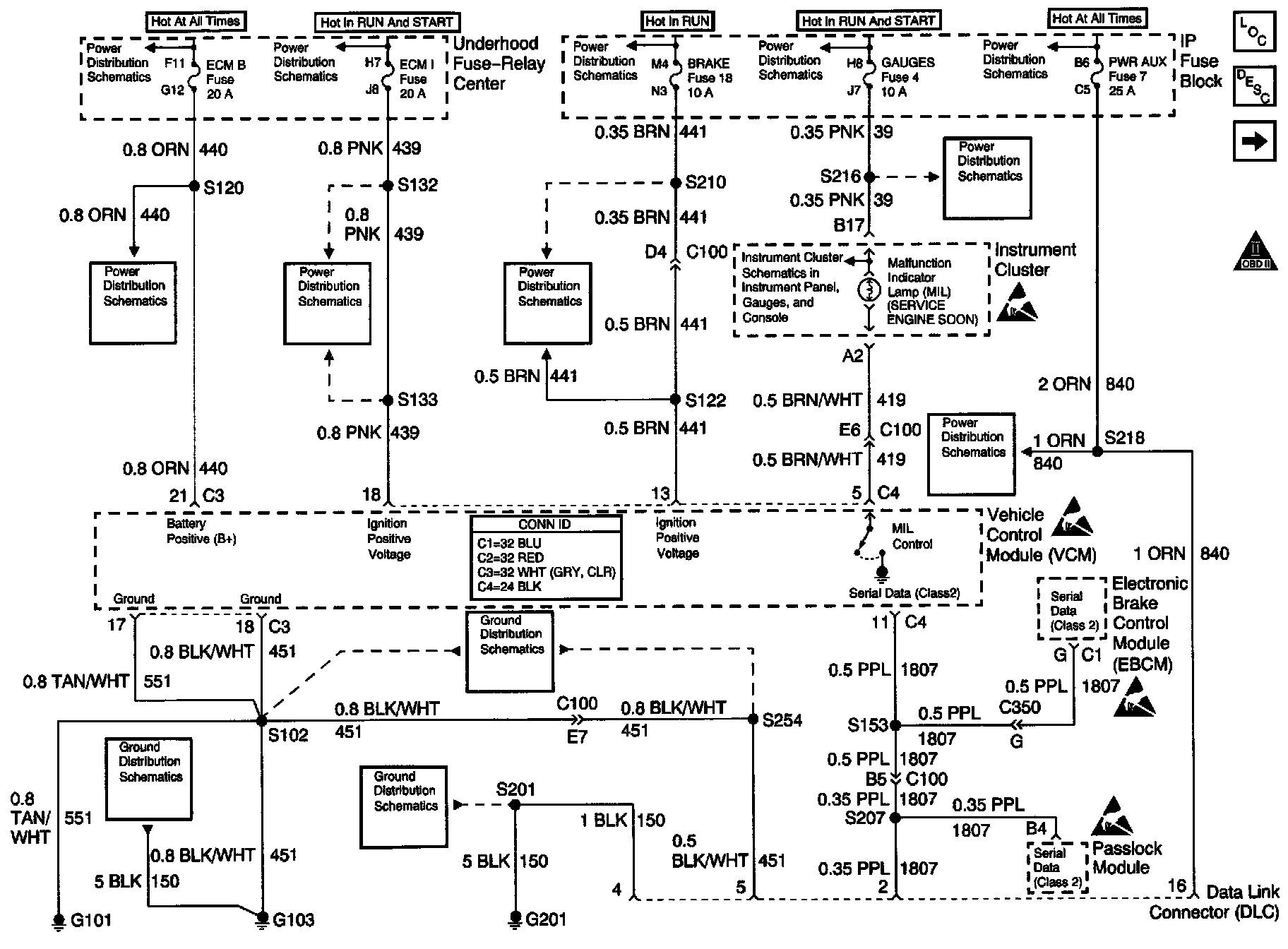 Engine Controls Schematics: Fuses, MIL, VCM, DLC, G101, G103, G201: