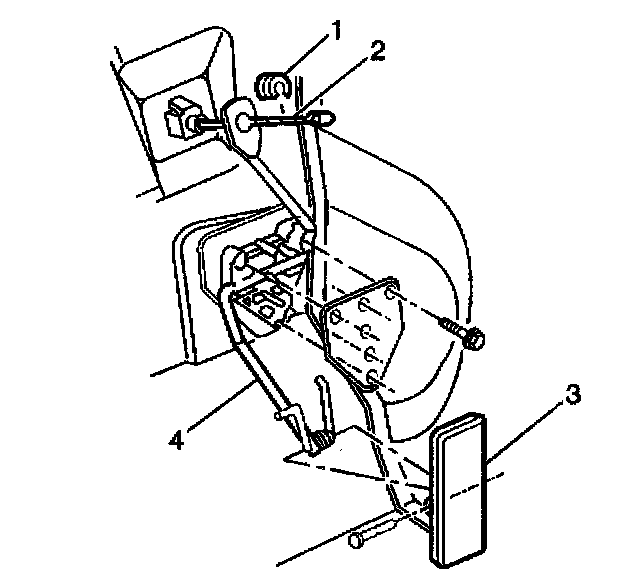 1. Lift upward on the accelerator pedal (3) to relieve the tension on the cable (2).
