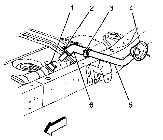 7. Disconnect the fuel fill hose (6) from the fuel fill pipe (5).