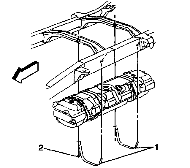 11. Remove the fuel tank straps (2).