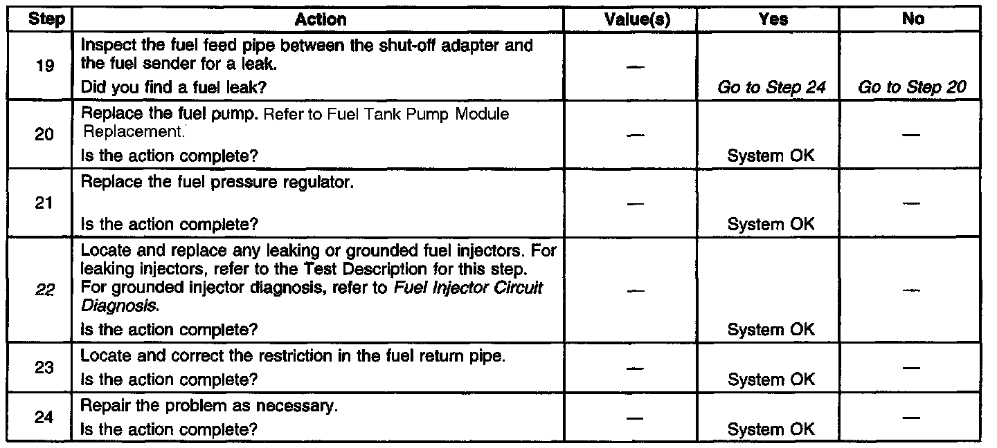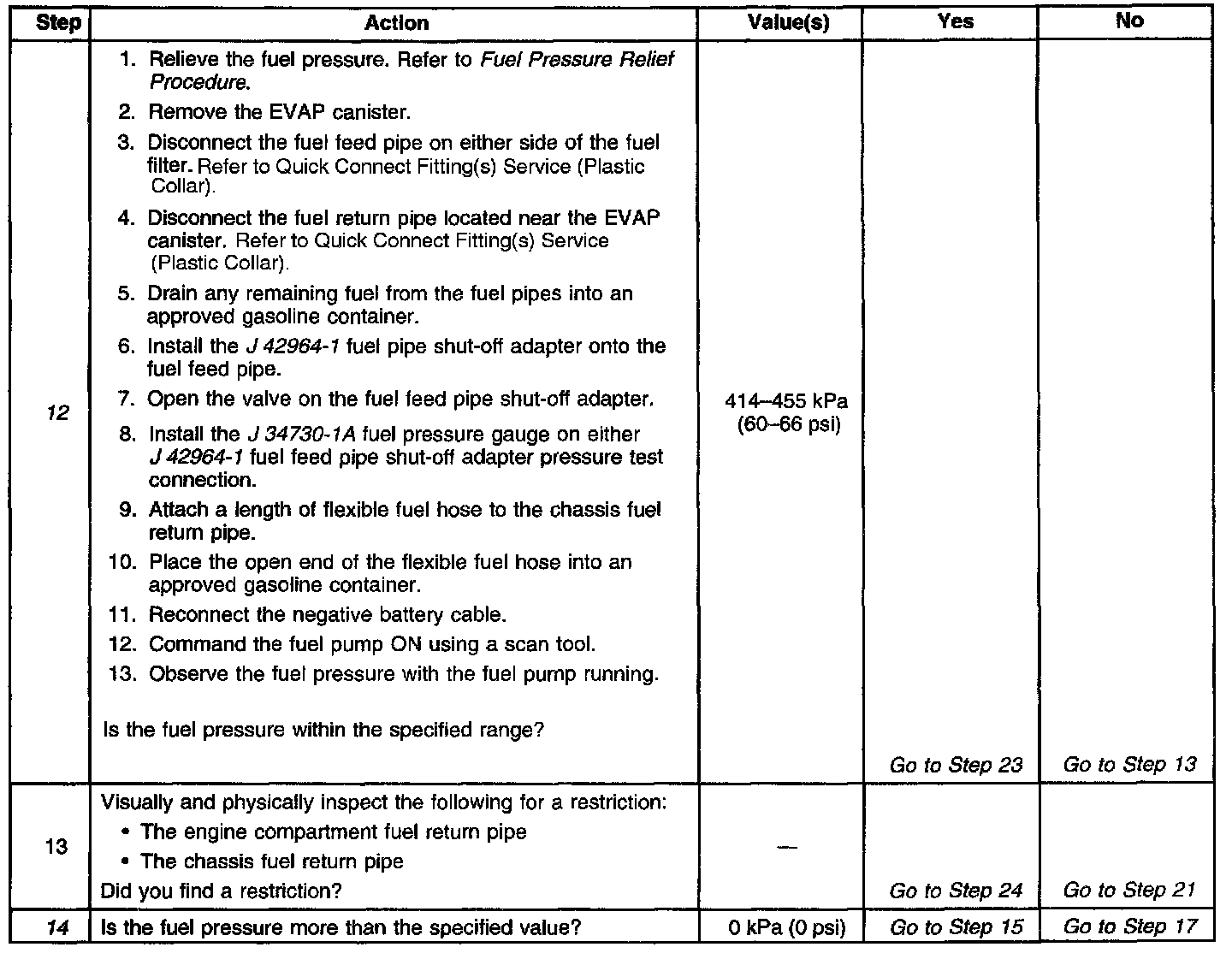 12. This test determines if the high fuel pressure is due to a restricted fuel return pipe or if the high fuel pressure is due to a faulty fuel pressure regulator.
