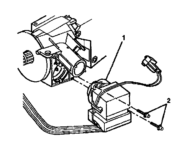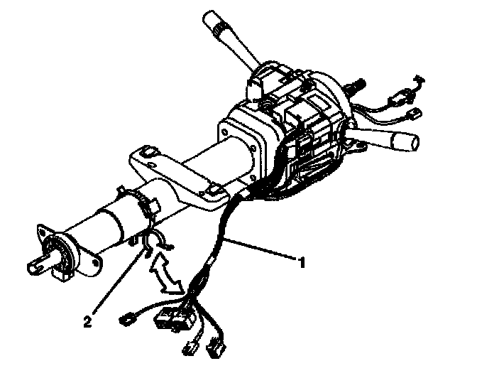 6. Attach the wire harness assembly (1) to the wire harness strap (2).