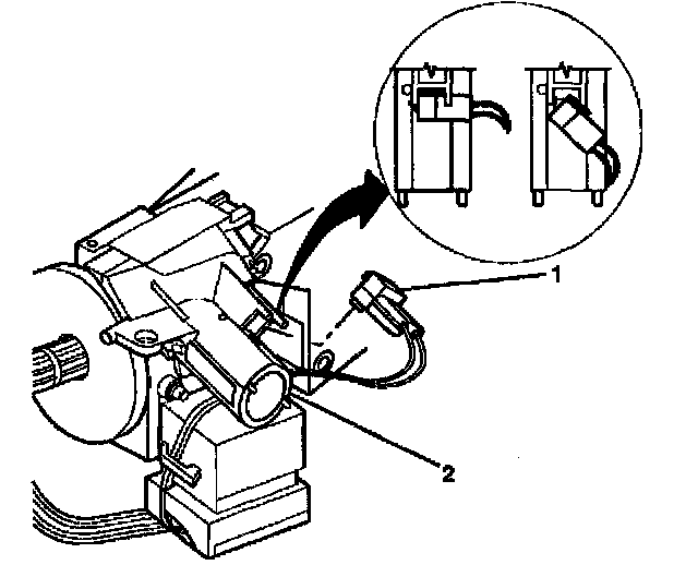 4. Slide the 2 connectors (2) of the turn and multifunction switch assembly into the bulkhead connector (1).