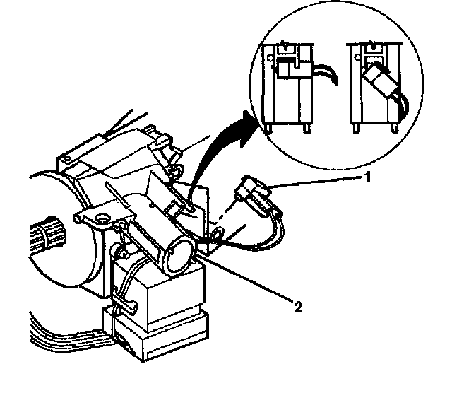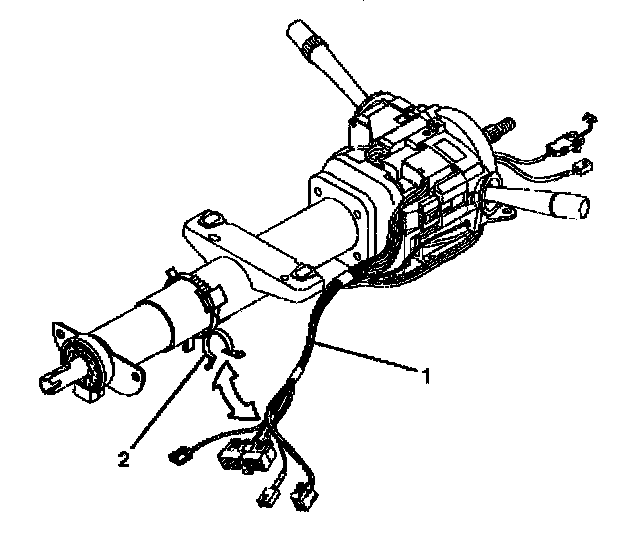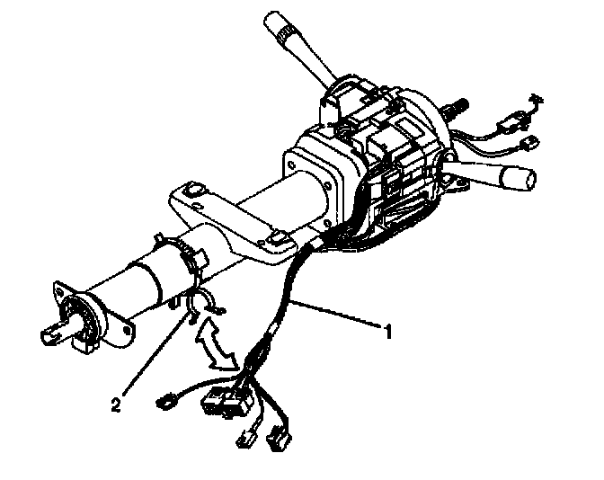 7. Slide the 2 connectors (2) of the turn signal and multifunction switch assembly out of the bulkhead connector (1).