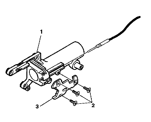- Press the locking tab on the end of the park lock cable assembly (1) into the slot in the lock module assembly.
