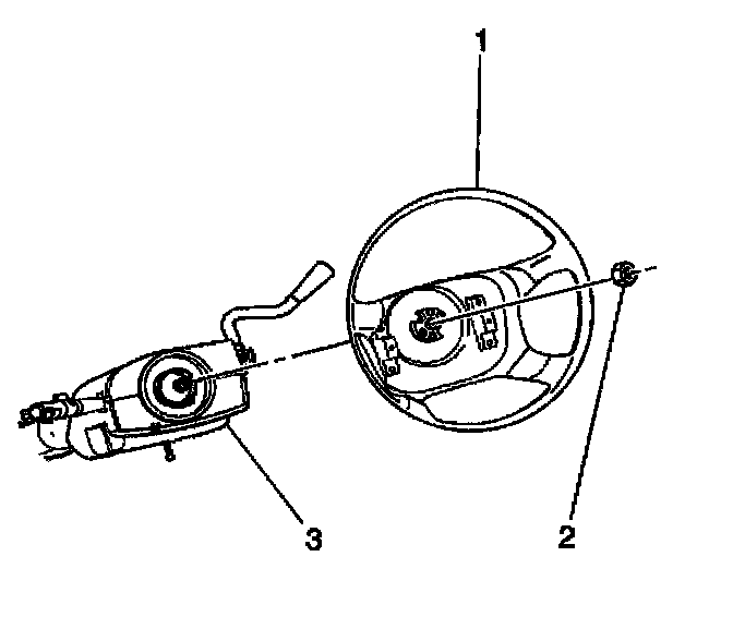 3. Remove the steering wheel and the nut (2).