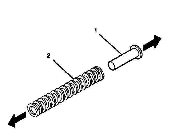 5. Remove the spring guide (1) from the tilt spring (2).