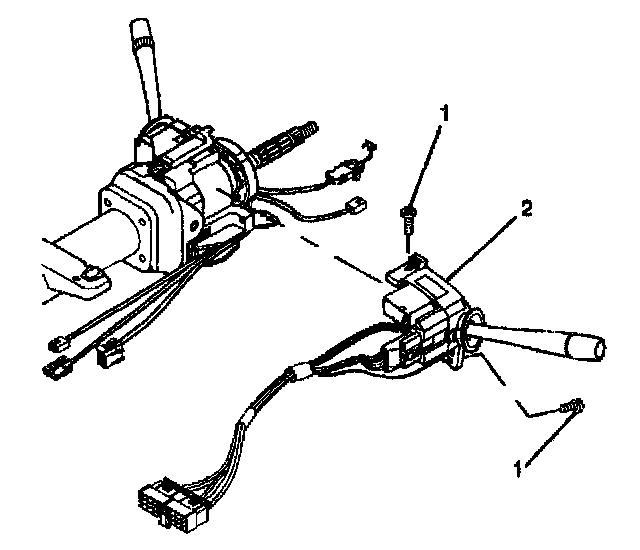 1. Install the turn signal and multifunction switch assembly (2) onto the steering column tilt head assembly.