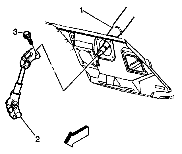 6. Install the intermediate shaft retaining bolt (3) to the steering column (1).