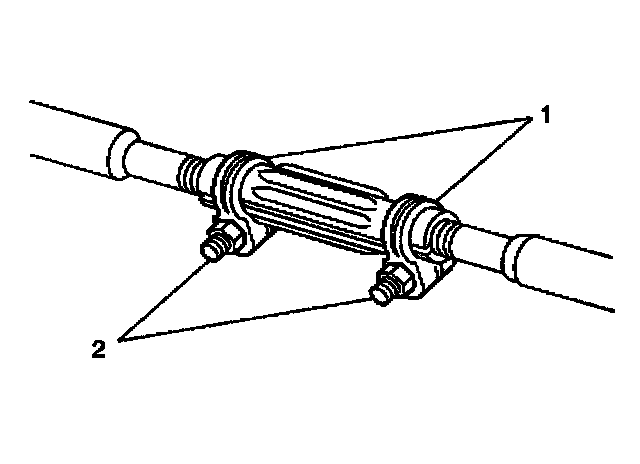 5. Remove the tie rod ends from the adjuster tube. Loosen the clamp bolts (2) and unscrew the end assemblies.