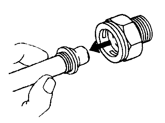 11. Do not use the plastic cap on the cooler line in order to install the cooler line into the fitting.