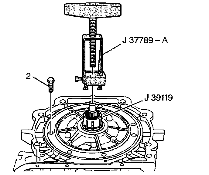 4. Tighten the bolt (1) with a wrench. This will tighten the J 37789-A around the J 39119.
