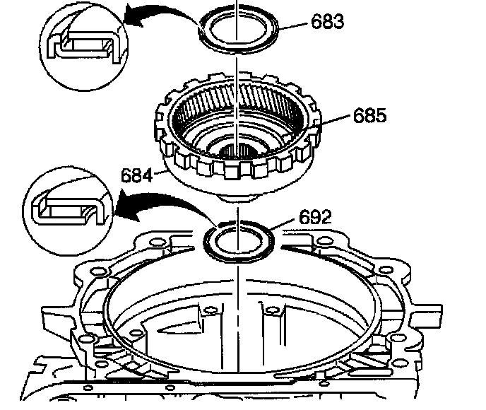 1. Install the reaction carrier/support thrust bearing assembly (683) into the internal reaction gear support (685).