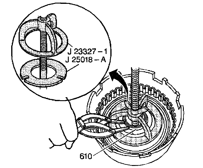 ^ Tools Required- J 23327-1 Clutch Spring Compressor