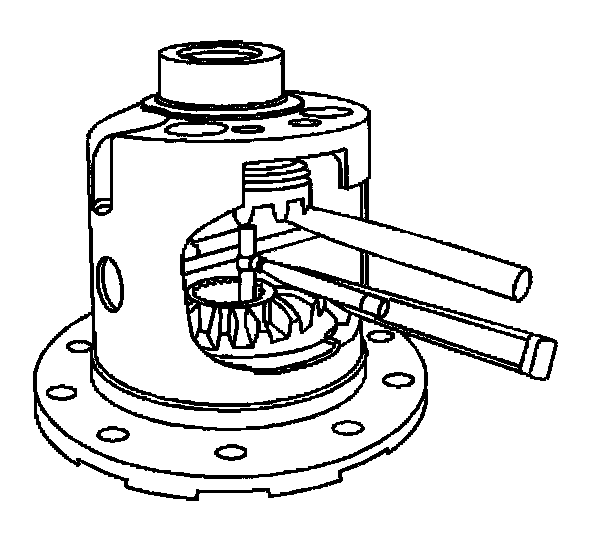 4. Install the pinion shaft. It may be necessary to press down on the side gear in order to align the pinion gear shaft opening with the pinion shaft opening in the differential case.