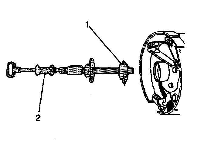 5. Remove the axle shaft seal and the bearing from the axle housing using the J 23689-A (1) an the J 2619-01 (2) (8.6 inch axle).