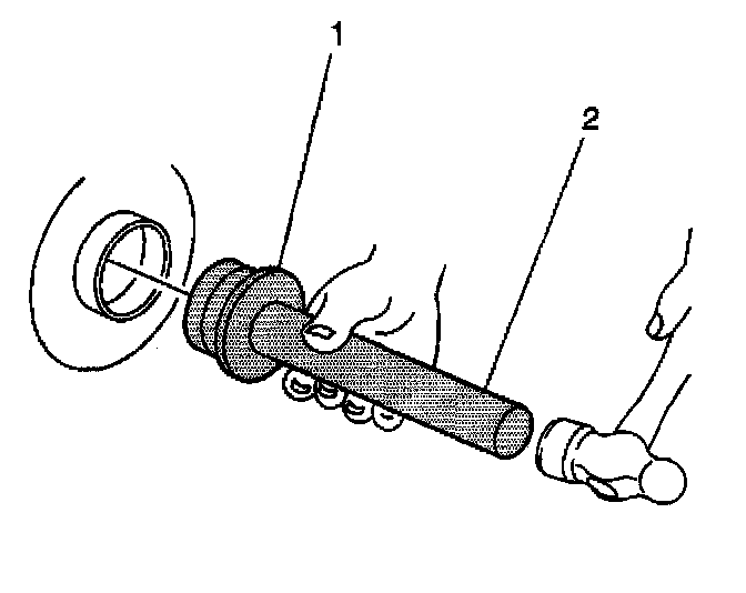 1. Install the axle shaft bearing using the J 23690 (8.6 inch axle) (1) or the J 29709 (9.5 inch axle) (1) and the J 8092 (2).