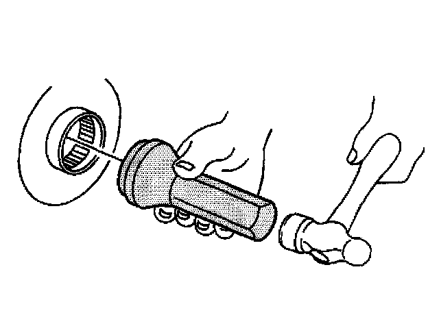 Drive the axle shaft bearing into the axle housing until the tool bottoms against the tube.
