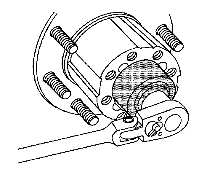 5. Tighten the wheel bearing adjusting nut using the J 2222-C. Rotate the hub in the opposite direction to the way the adjuster nut is turning. Ensure the inner bearing and the seal seats against the spindle shoulder. Tighten the adjusting nut to 70 Nm (52 ft. lbs.).