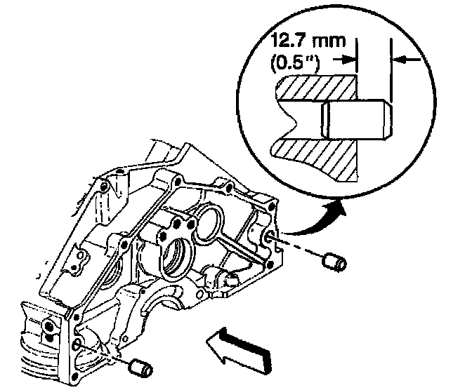 8. Remove the engine block oil gallery plugs (front) from the engine block and discard.