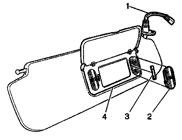 1. Gently pry out the lens (2) of the vanity mirror assembly (4) with a suitable flat-bladed tool.