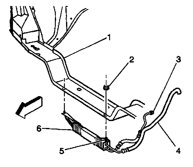 7. Remove the cooler (6) from the vehicle.