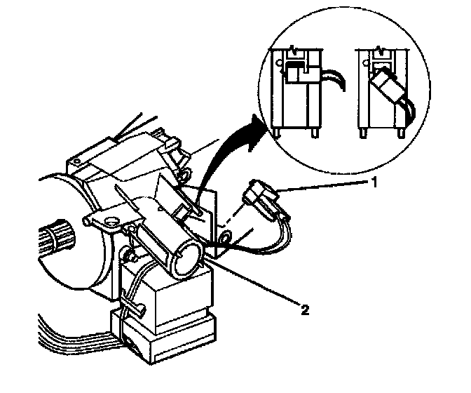 4. Slide the 2 connectors (2) of the turn signal and multifunction switch assembly into the bulkhead connector (1).