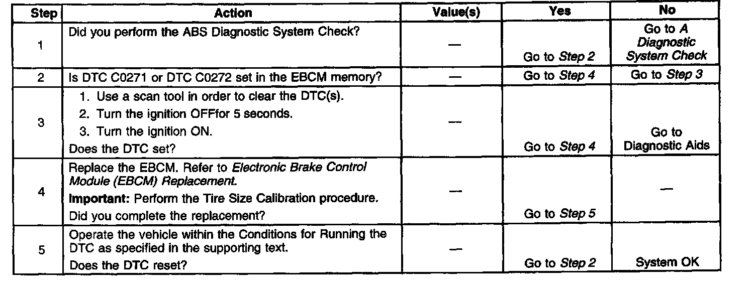 DTC C0271 and DTC C0272 cannot be cleared from the EBCM memory. The EBCM must be replaced if either of these DTCs is set.