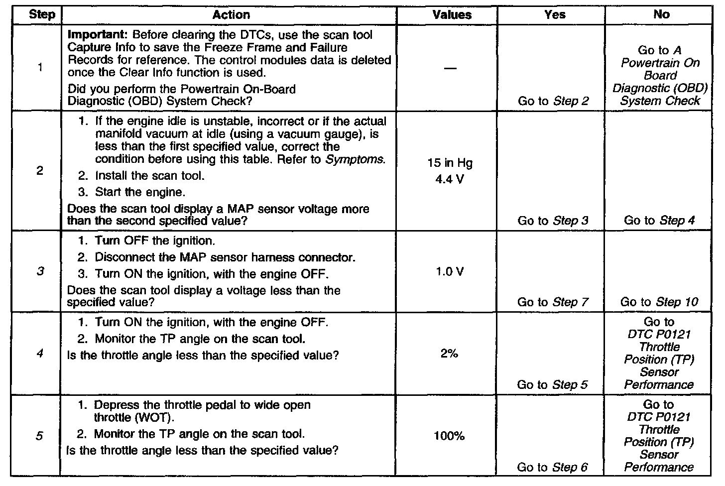 4. This step checks for a stuck TP sensor which could set a MAP sensor code. Even though DTC P0102 did not set, this DTC is more comprehensive and may aid in diagnosis.