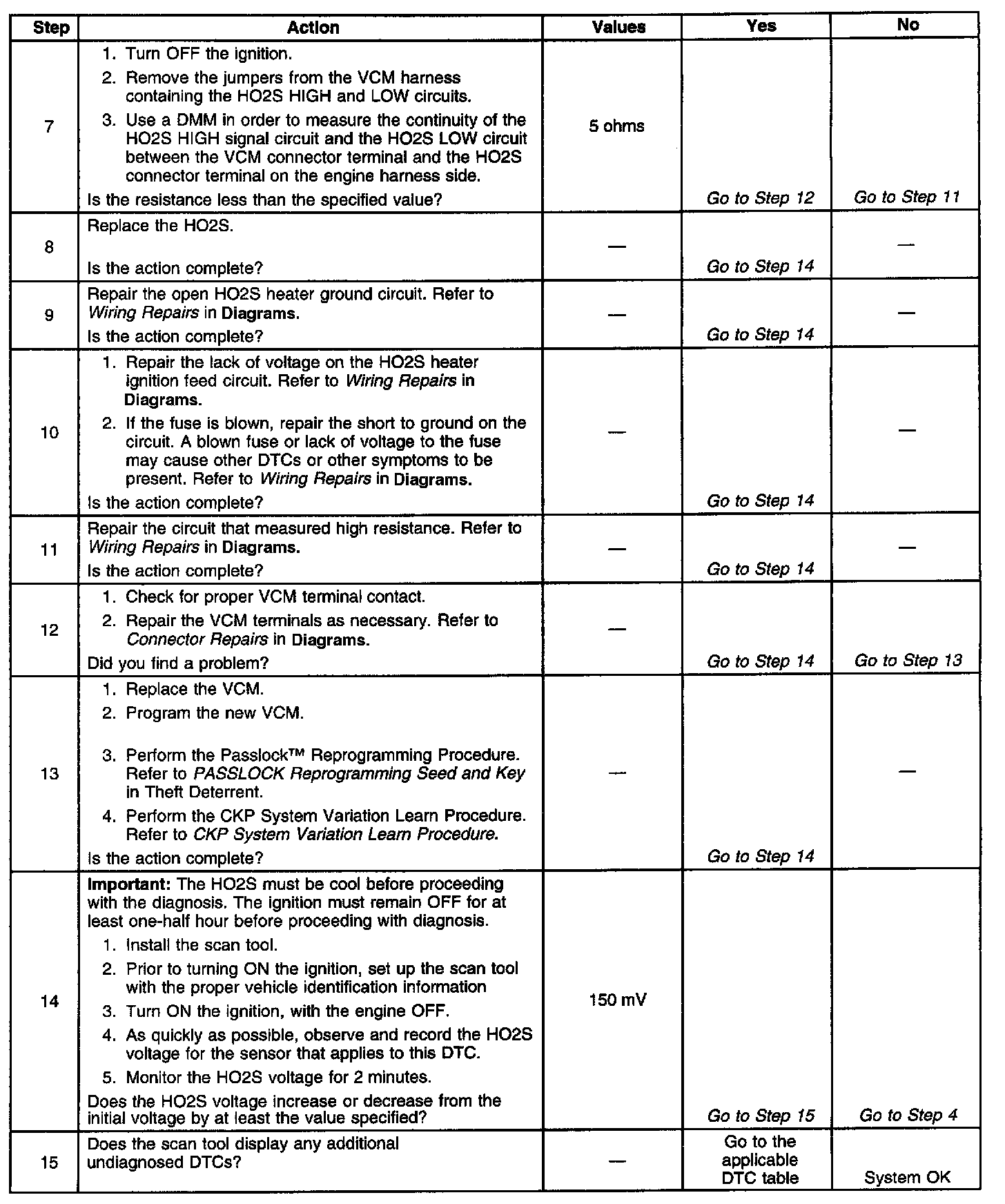 ^ An open or a short to voltage on either the HO2S signal or HO2S low circuits