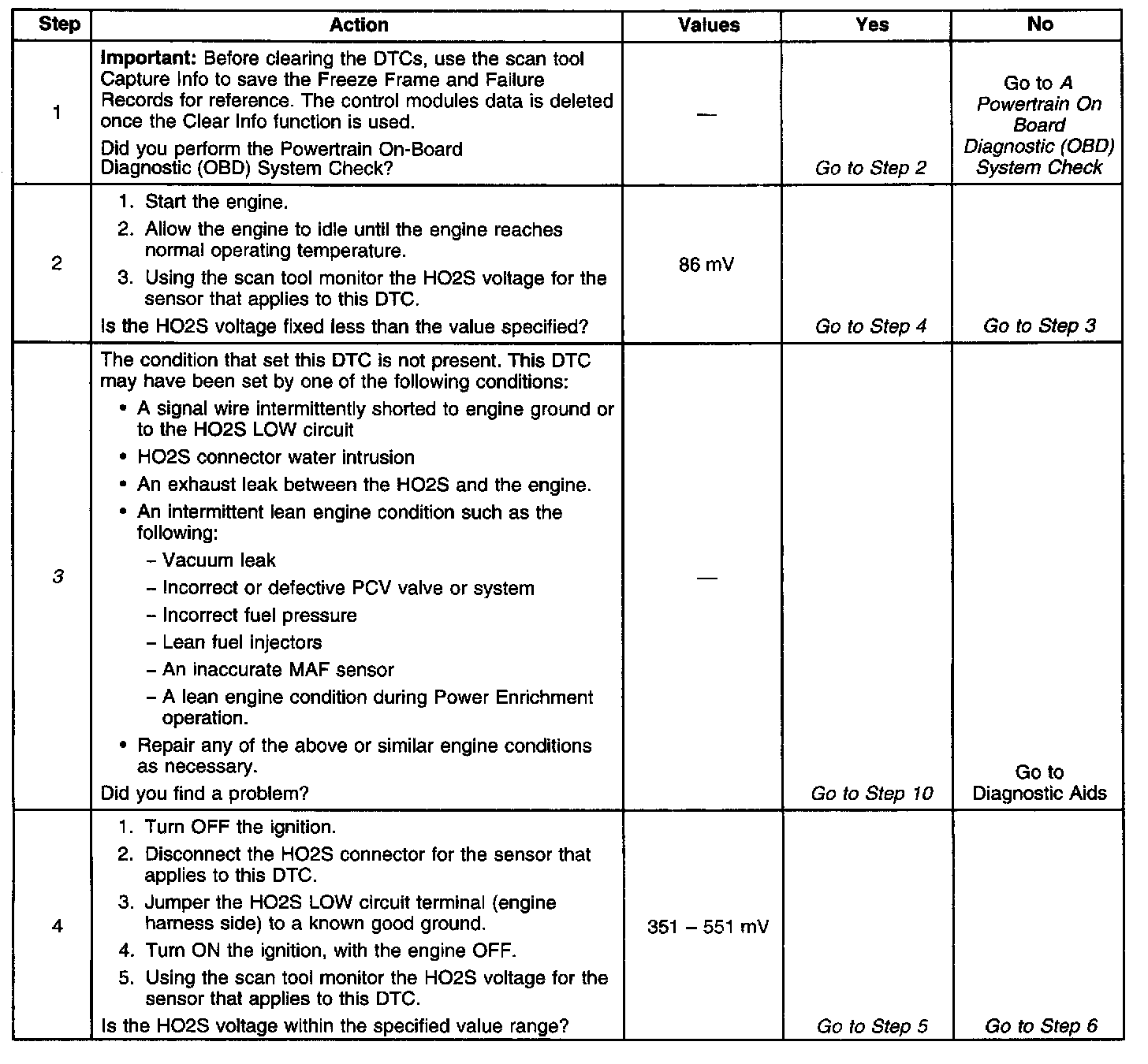 ^ Exhaust leaks - If there is an exhaust leak, the engine may pull the outside air into the exhaust and past the sensor. Refer to Exhaust System Inspection in Engine Exhaust. Testing and Inspection