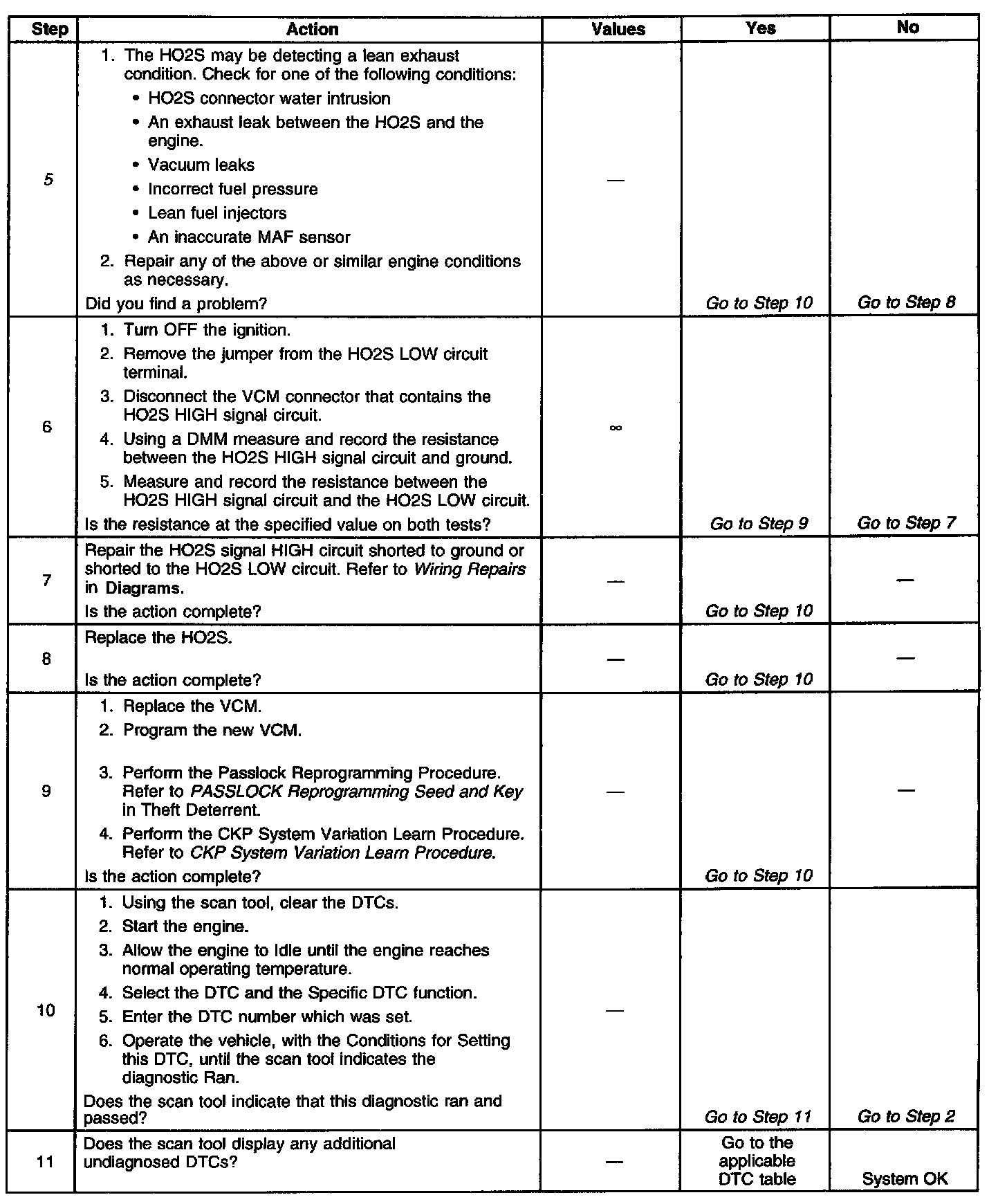 ^ An open or a short to voltage on either the HO2S signal or HO2S low circuits