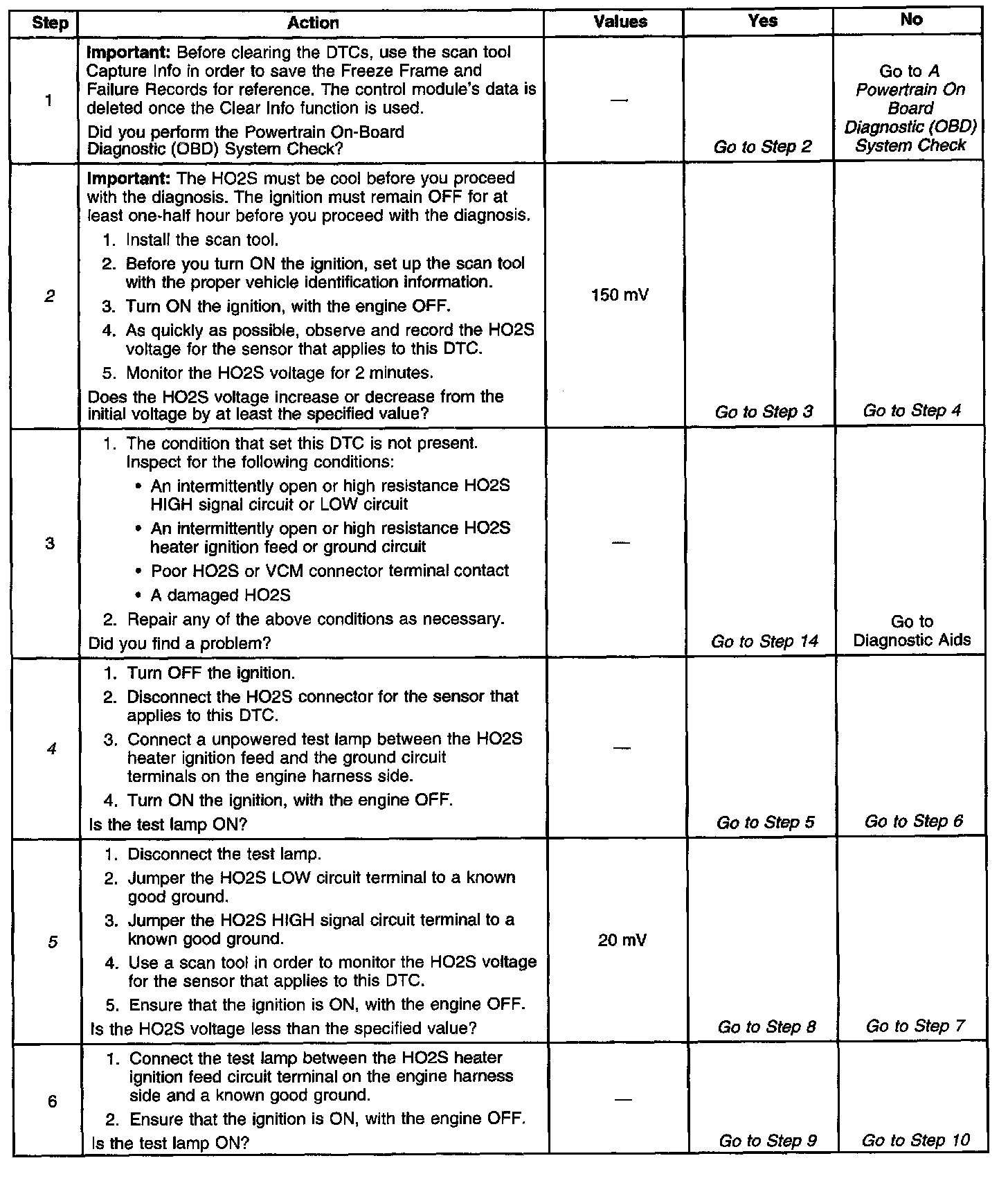 ^ An open or a short to voltage on either the HO2S signal or HO2S low circuits