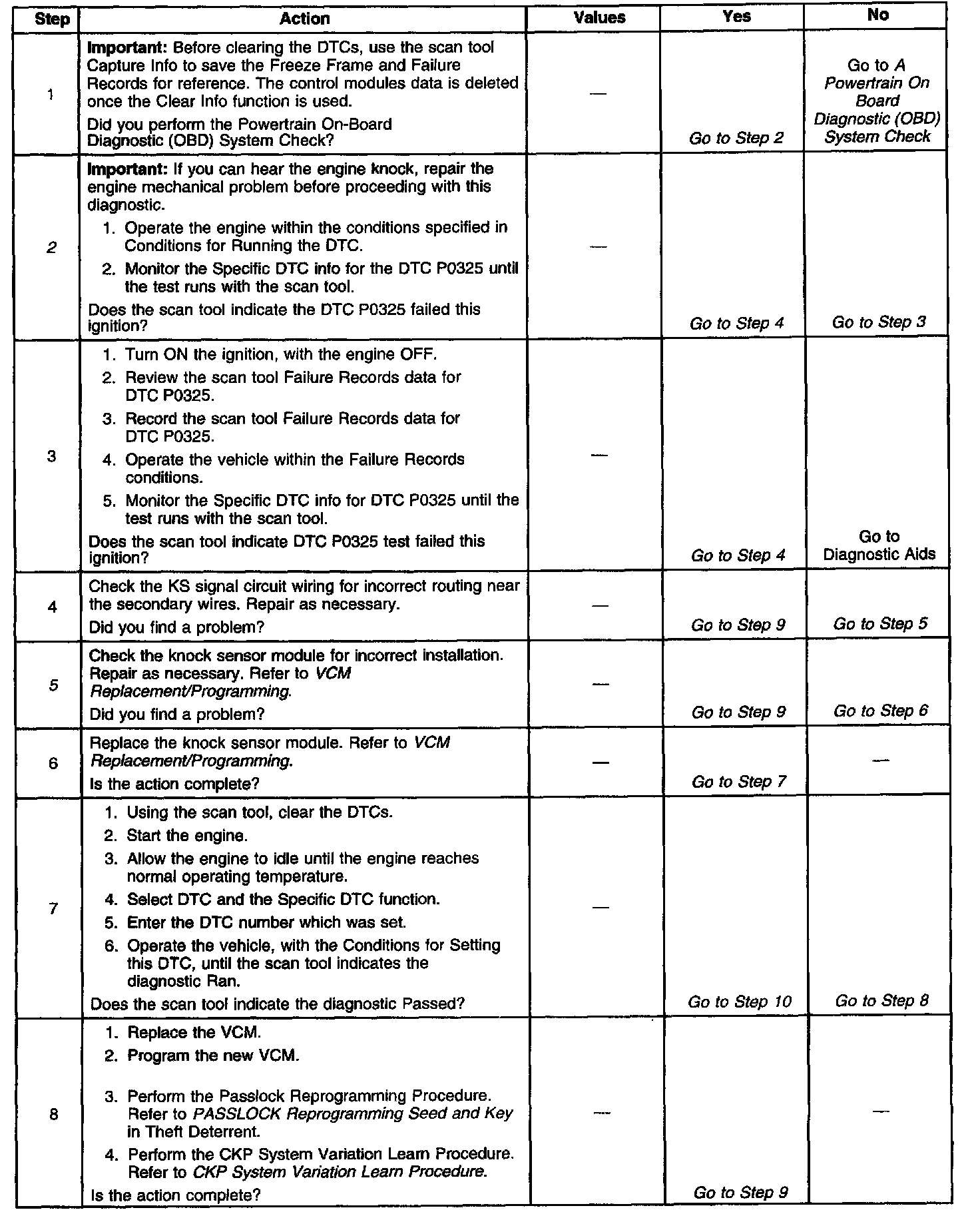 5. This step checks for an improperly installed knock sensor module.