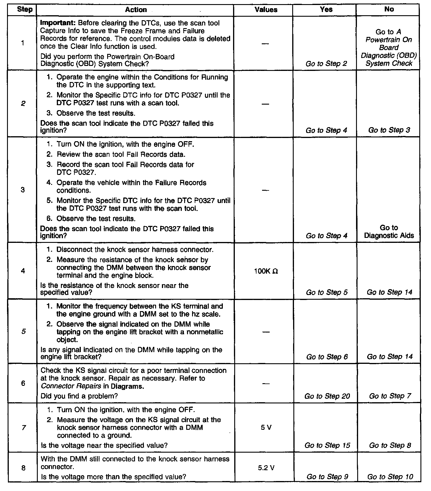 5. Ensures that the knock sensor is capable of detecting detonation. Striking the lift bracket with a non-metallic object should produce a signal that the knock sensor should detect.