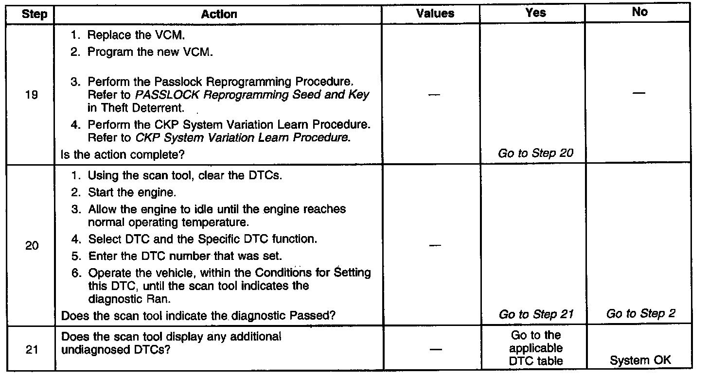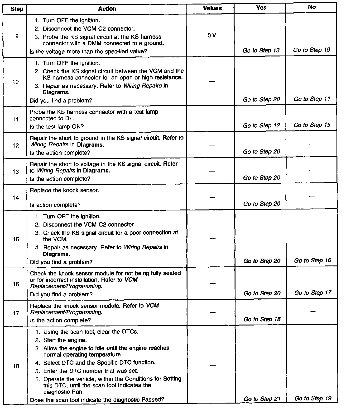The numbers below refer to the step numbers on the diagnostic table.
