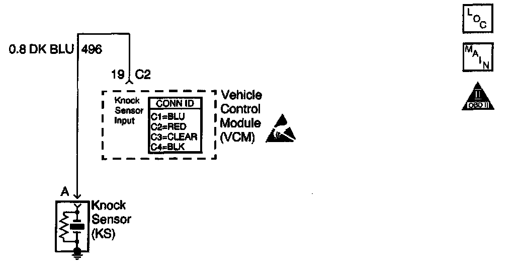 The control module uses the Knock Sensors (KS) in order to detect engine detonation. Ignition Control (IC) spark timing is retarded based on the KS signal input when spark knock is detected.