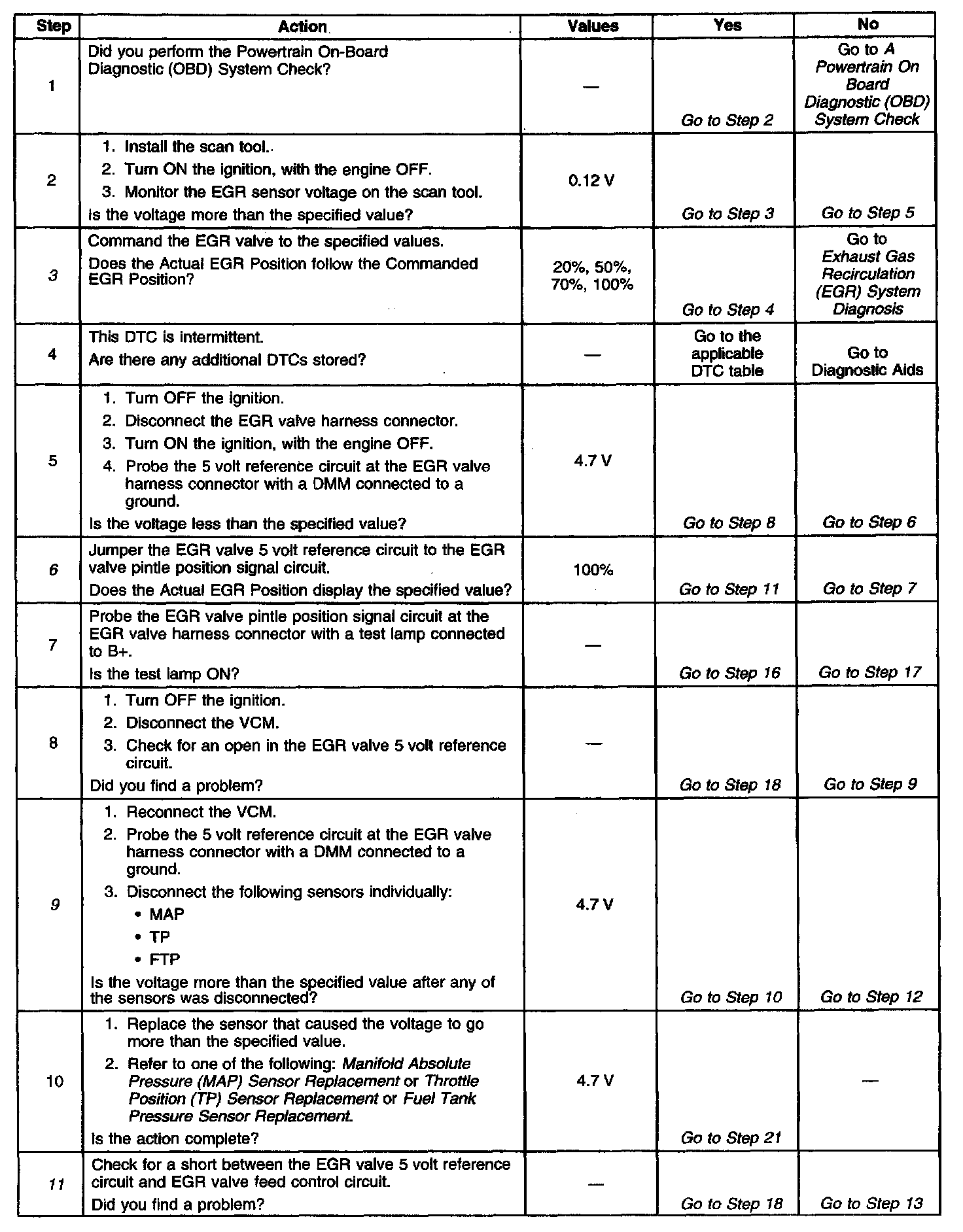 11. A 5 volt reference circuit short to the EGR valve feed control circuit will ground through the EGR valve when the EGR valve harness connector is connected.