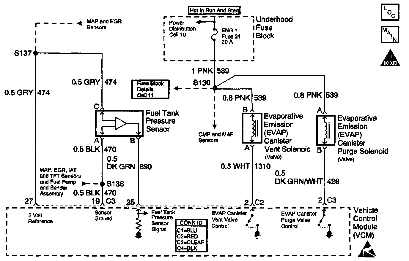 ^ A kinked, pinched, or plugged vacuum source, EVAP purge, or fuel tank vapor line. Verify that the lines are not restricted.