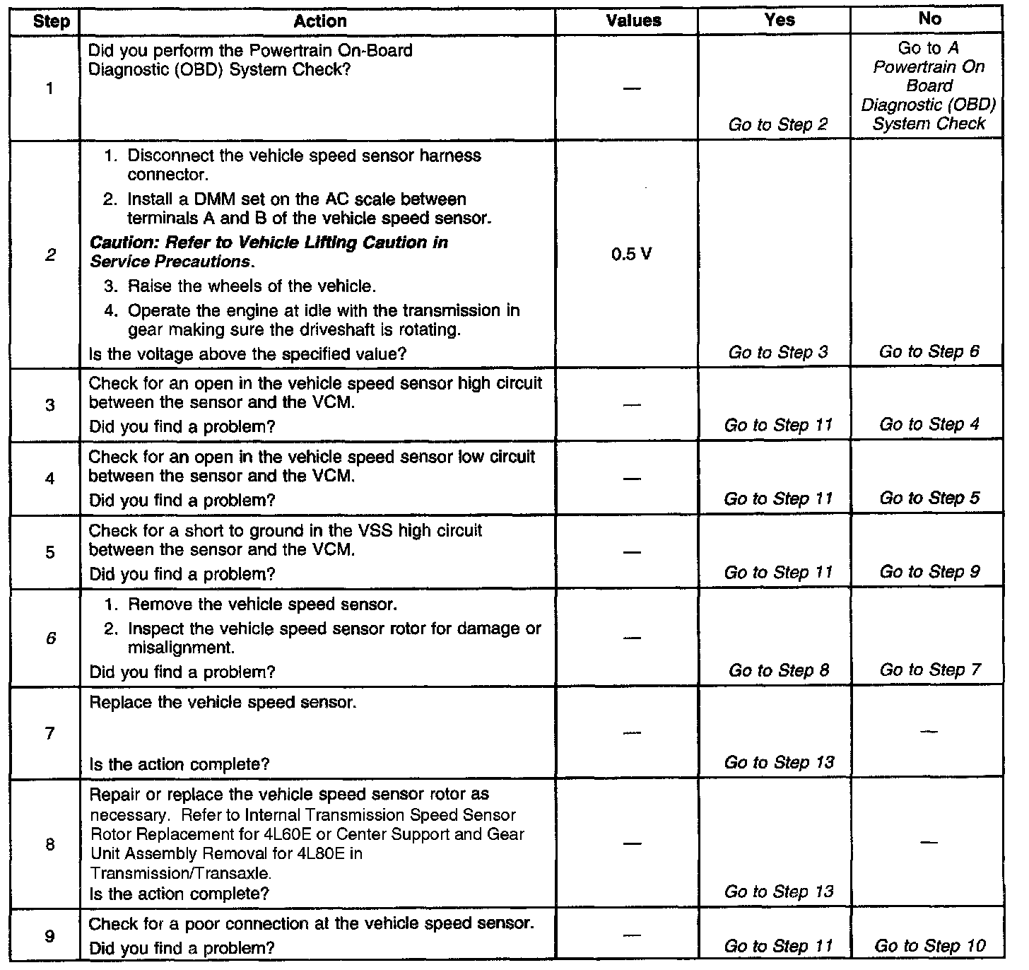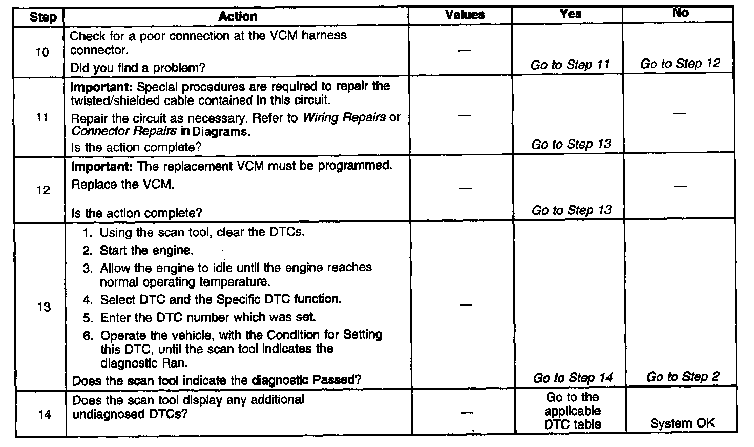 The numbers below refer to the step numbers in the diagnostic table.