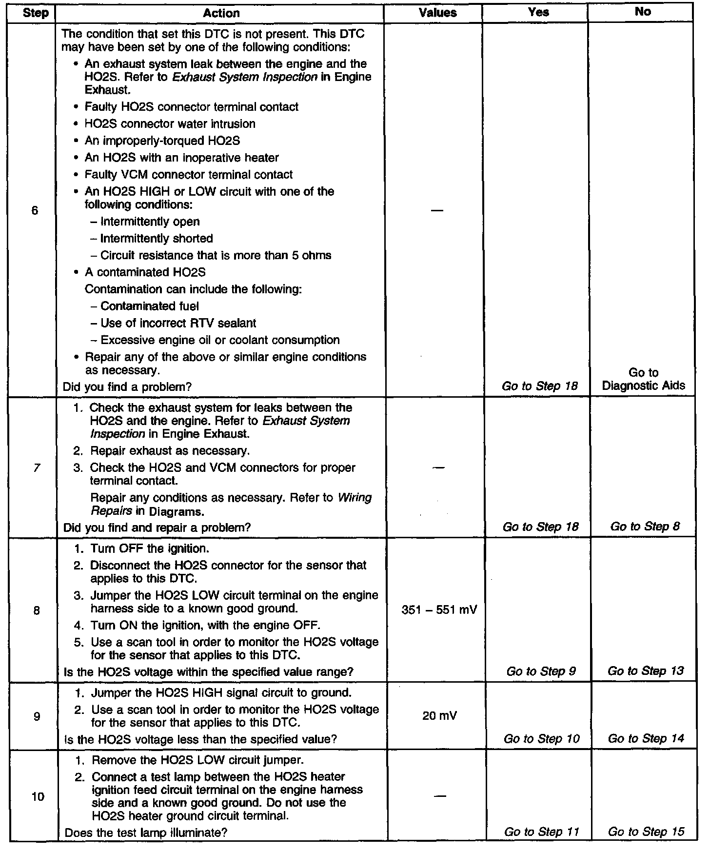 ^ An open or a short to voltage on either the HO2S signal or HO2S low circuits
