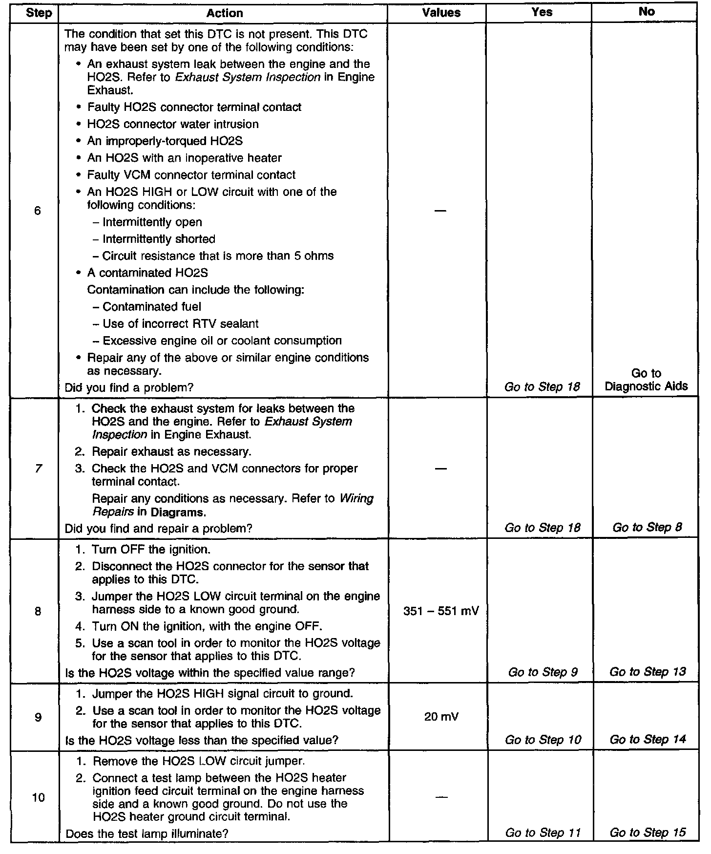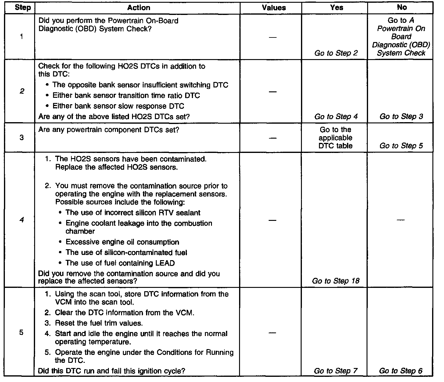 ^ An open or a short to voltage on either the HO2S signal or HO2S low circuits